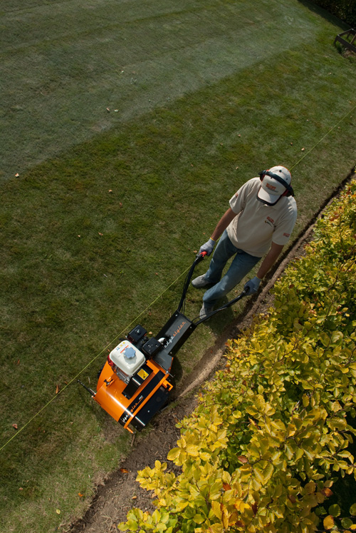 - Oscylacyjny nóż tnie glebę równie dobrze lub lepiej niż szybko wirujące ostrza krawędziarek lub trymerów żyłkowych,
