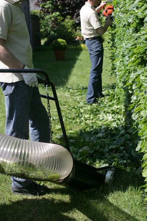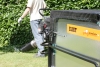 Przestronny pojemnik na liscie i zanieczyszczenia. Idealnie wyważony, na ogumionych kołach wygodny w opróżnianiu zebranych odpadów zielonych.