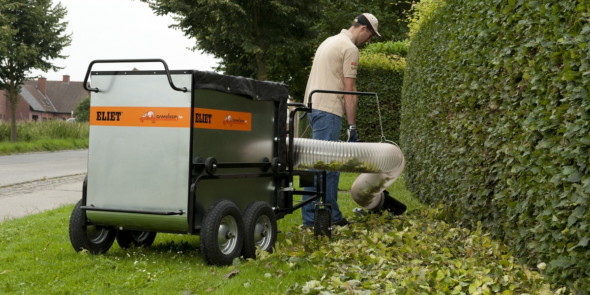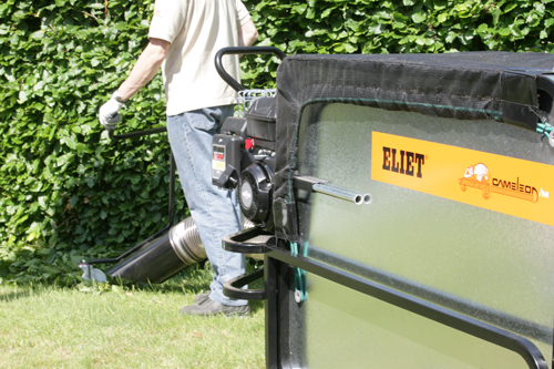 Cameleon to innowacja firmy ELIET, kombinacja kompaktowego zbieracza liści z opcjonalną przystawką rozdrabniającą (wersja M 450 standard). Maszyna jest idealna dla użytkowników indywidualnych z dużymi podwórzami, gdzie wymagają uprzątnięcia pozostałości ogrodowe, tj.: zbieranie liści, pozostałości po cięciu żywopłotu, przycinaniu kwiatów i innych zadań o podobnej naturze.