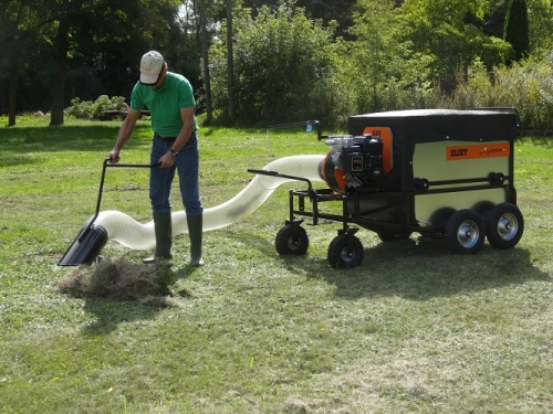 ELIET Cameleon M 360 w akcji: zbieranie liści, skoszonej trawy.