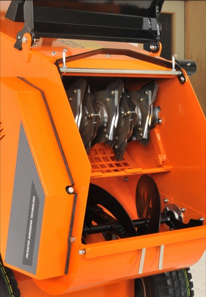 System ELIET Axelero™ odpowiedzialny za górny wyrzut zrębków powoduje ponadto efekt ssania w otworze załadowczym, co sprzyja wejściu materiału rozdrabnianego i zapobiega cofaniu się zrębków.