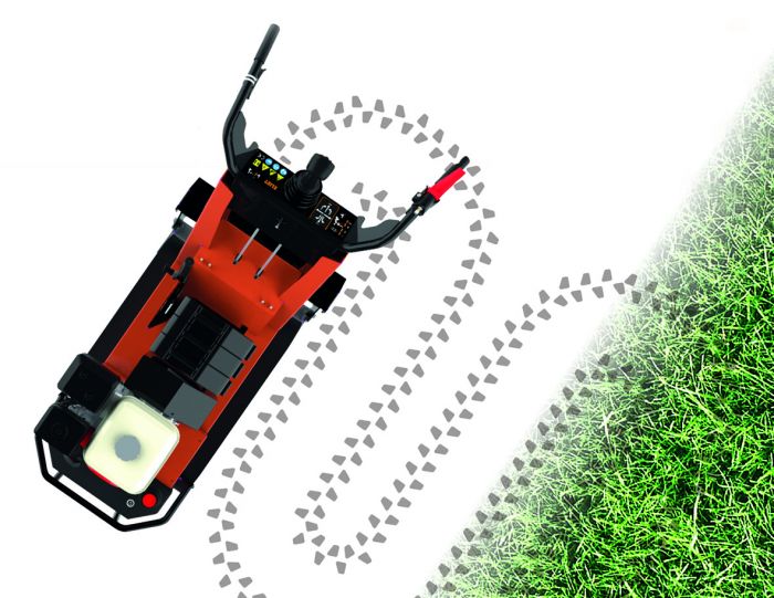 Dzięki gąsienicom maszyna ma znacznie większą powierzchnię kontaktu z podłożem, co zapewnia znacznie większą siłę uciągu. Jest oczywiste, że w ten sposób osiąga się znacznie większą wydajność i znacznie zwiększa się komfort operatora. Optymalna trakcja takiego napędu pozwala ELIET TURFAWAY 600 odciąć darń za pomocą noża o szerokości aż 60 cm, na głębokości nawet do 6 cm. Maszyna zajmuje więc również czołową pozycję wśród samojezdnych wycinarek pod względem szerokości roboczej.