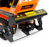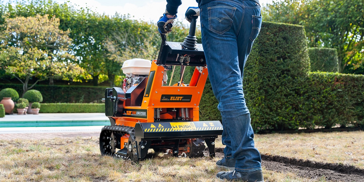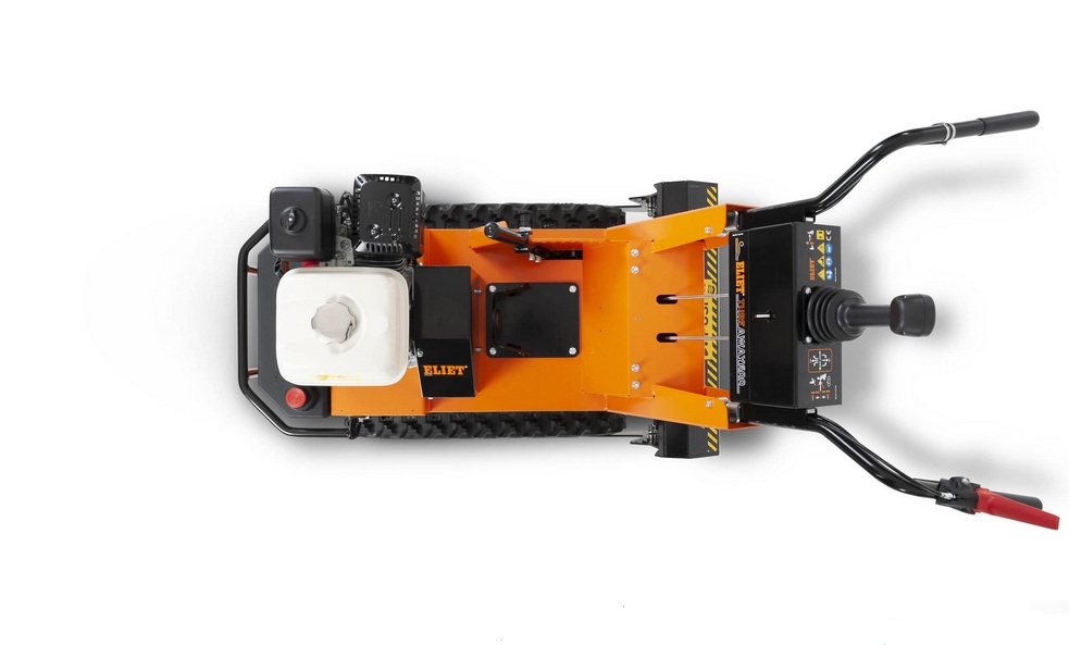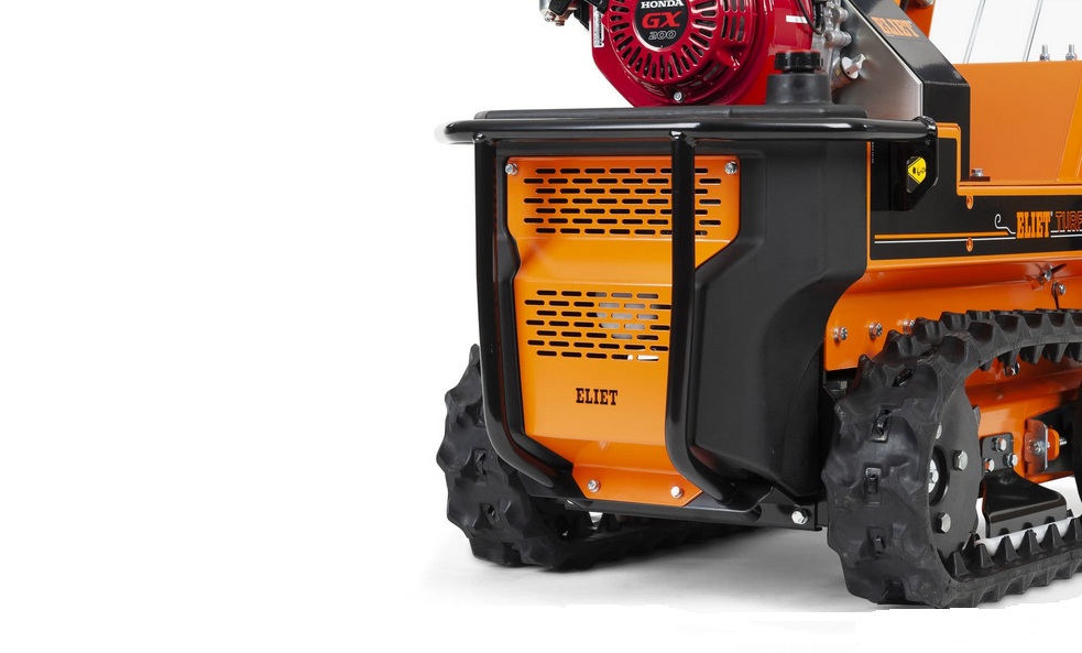 ELIET przekonująco prezentuje podwozie gąsienicowe, które sprawia, że maszyna jest znacznie bardziej stabilna i wyróżnia się większą kontrolą głębokości. Zapewniona jest najlepsza zwrotność, ponieważ gąsienice napędzane są podwójnym hydrostatem, który reguluje prędkość każdej gąsienicy osobno. Ułatwia to prowadzenie płynnych skrętów, a nawet obracanie maszyny w miejscu wokół jej osi.