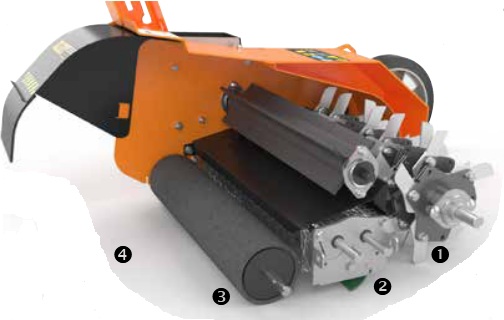 Technologia pracy: 1.Wał przeciwbieżny wykonuje rowki pod nasiona, 2.Nasiona wdmuchiwane są do rowków, 3.Walec zagęszcza glebę wokół nasion, 4. Ziemia z rowków odrzucana górą do tyłu i wspomagana przez dodatkowy walek łopatkowy przykrywa równomiernie powierzchnię siewu.