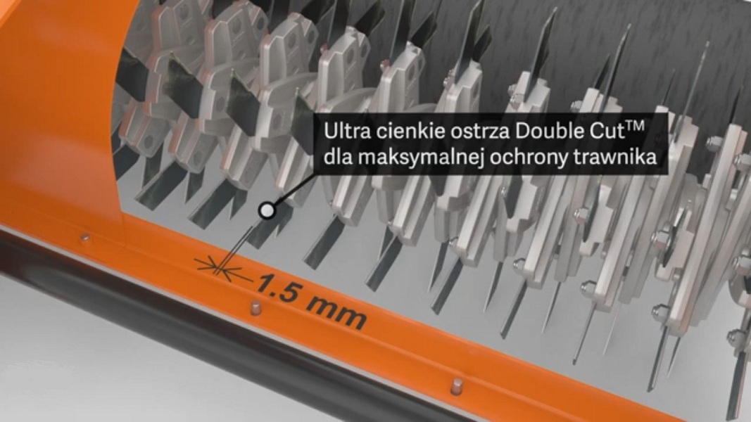 Cechą szczególną tego wertykulatora jest to, że ostrza obracają się do góry. Ten kierunek obrotu ostrzy zapewnia znacznie skuteczniejsze usuwanie filcu, mchu i innych zanieczyszczeń z murawy.