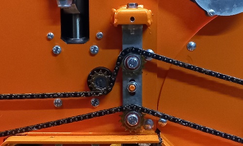 Łańcuch przenosi napęd z przedniego walca napędowego (poprzez zębatkę w sprzęgle przeciążeniowym) na wał tylny.