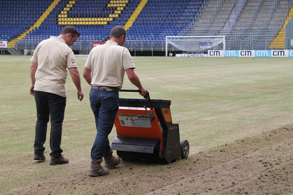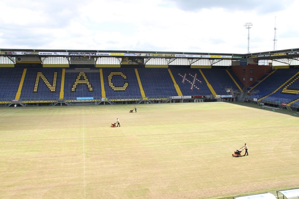 Silna grupa wyposażona w maszyny do renowacji trawników firmy ELIET tj.: 3 podsiewacze DZC 600 i wertykulator E 750 wykonała renowację murawy na stadionie holenderskiego klubu piłkarskiego NAC Breda.
