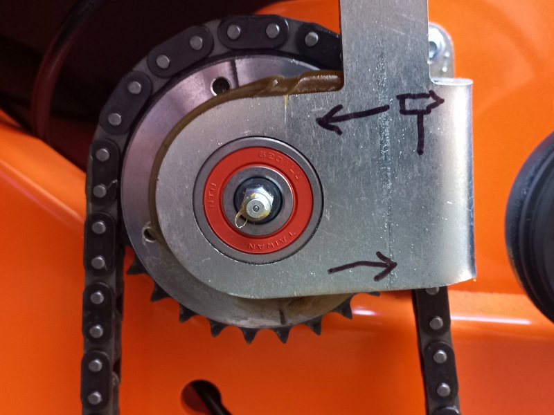 Może to osłabić "czujność" systemu w sytuacji zablokowania ciałem obcym któregoś z napędzanych układów: przenośnika odpadu, ślimaków podawania nasion lub rolki jezdnej. Zwiększenie siły ciągu łańcucha przy nadmiernym oporze na zębatce napędowej któregoś z wymienionych układów grozi zniszczeniem zębatki i łańcucha.