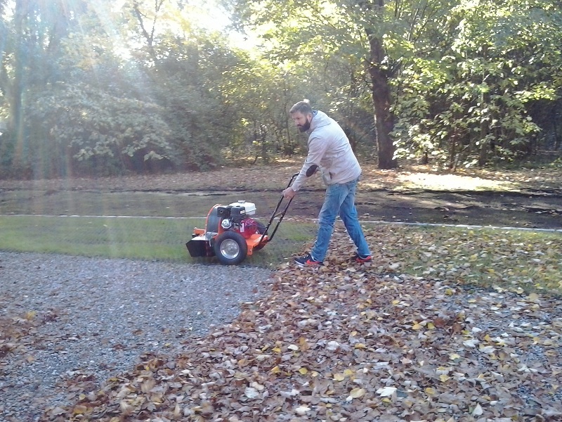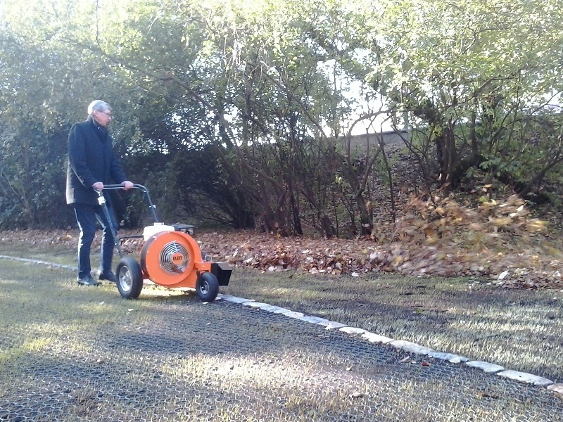 - Siła podmuchu "półmokrych" liści okazała się zadowalająca. "Wałek" liści nawarstwiony na około 20 metrach bez problemu transportowany jest pod krzewy