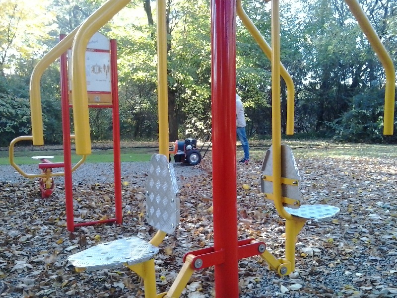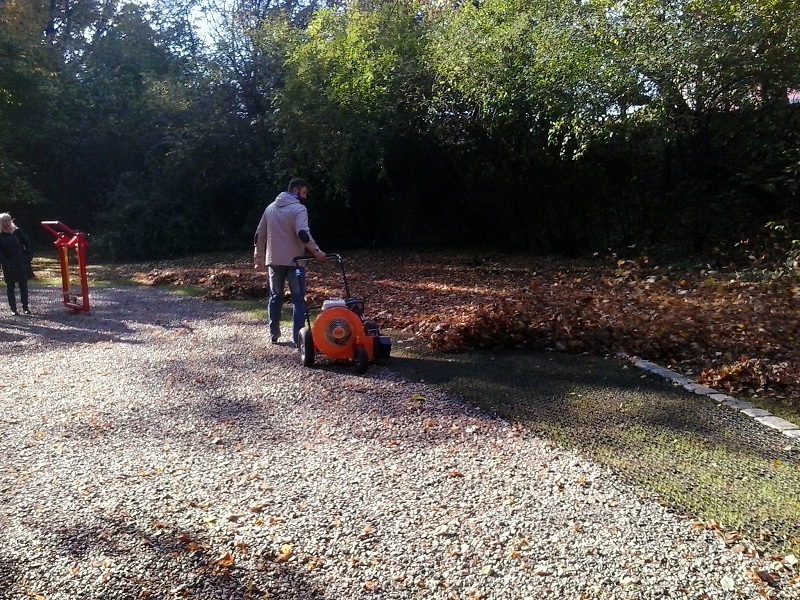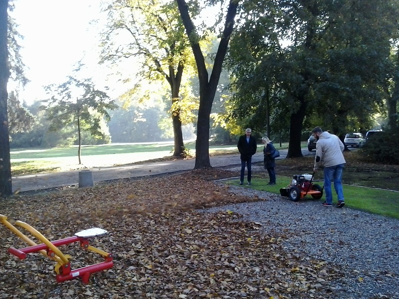 Przy pięknym słońcu i po chłodnej nocy (przymrozek) w praskim Parku Skaryszewskim mieliśmy okazję przetestować dmuchawę do lisci ELIET BL450E. Test wykonaliśmy na obsypanym świeżo opadłymi liśćmi placyku siłowni plenerowej z nawierzchnią mieszaną: żwirową, trawiastą i brukową.