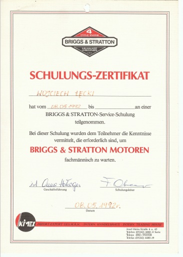 Lokalnie, w naszej siedzibie wykonujemy serwis gwarancyjny i pogwarancyjny silników Briggs&Stratton wyłącznie do naszych maszyn sprzedanych w ramach sieci Partnerów.