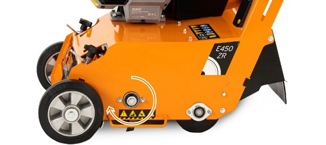 Samobieżne: E550 ZR - NOWOŚĆ prezentacja wiosna 2022, Collector, Compactor. Napęd ogumionej rolki pozwala zastosować przeciwbieżny wał nożowy pracujący w przeciwnym kierunku do obrotów kół. Skuteczność wygrabiania jest dwukrotnie większa niż w zwykłych wertykulatorach. Komfort obsługi to dodatkowa korzyść.