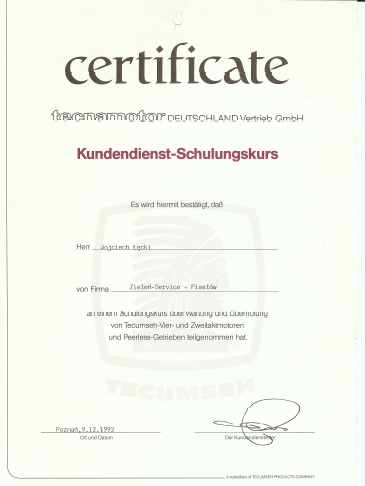 - lokalnymi dilerami sprzętu ogrodniczego posiadającymi własne autoryzowane warsztaty serwisowe.